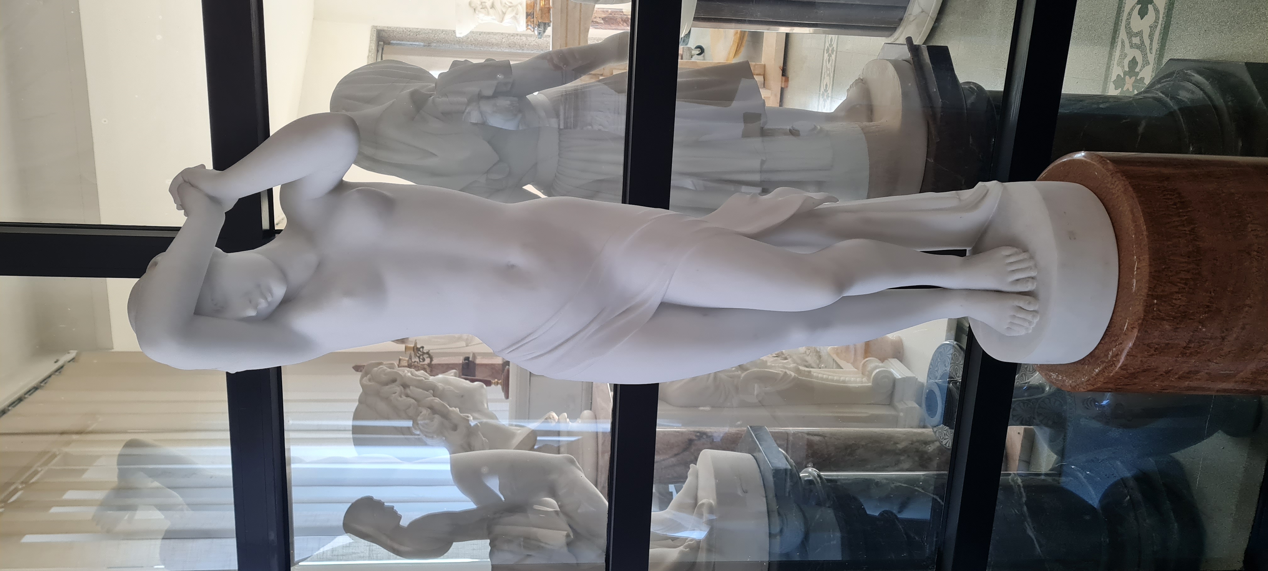 STATUA VENERE di CIRENE SCOLPITA IN MARMO BIANCO CARRARA PATINATA ANTICHIZZATA