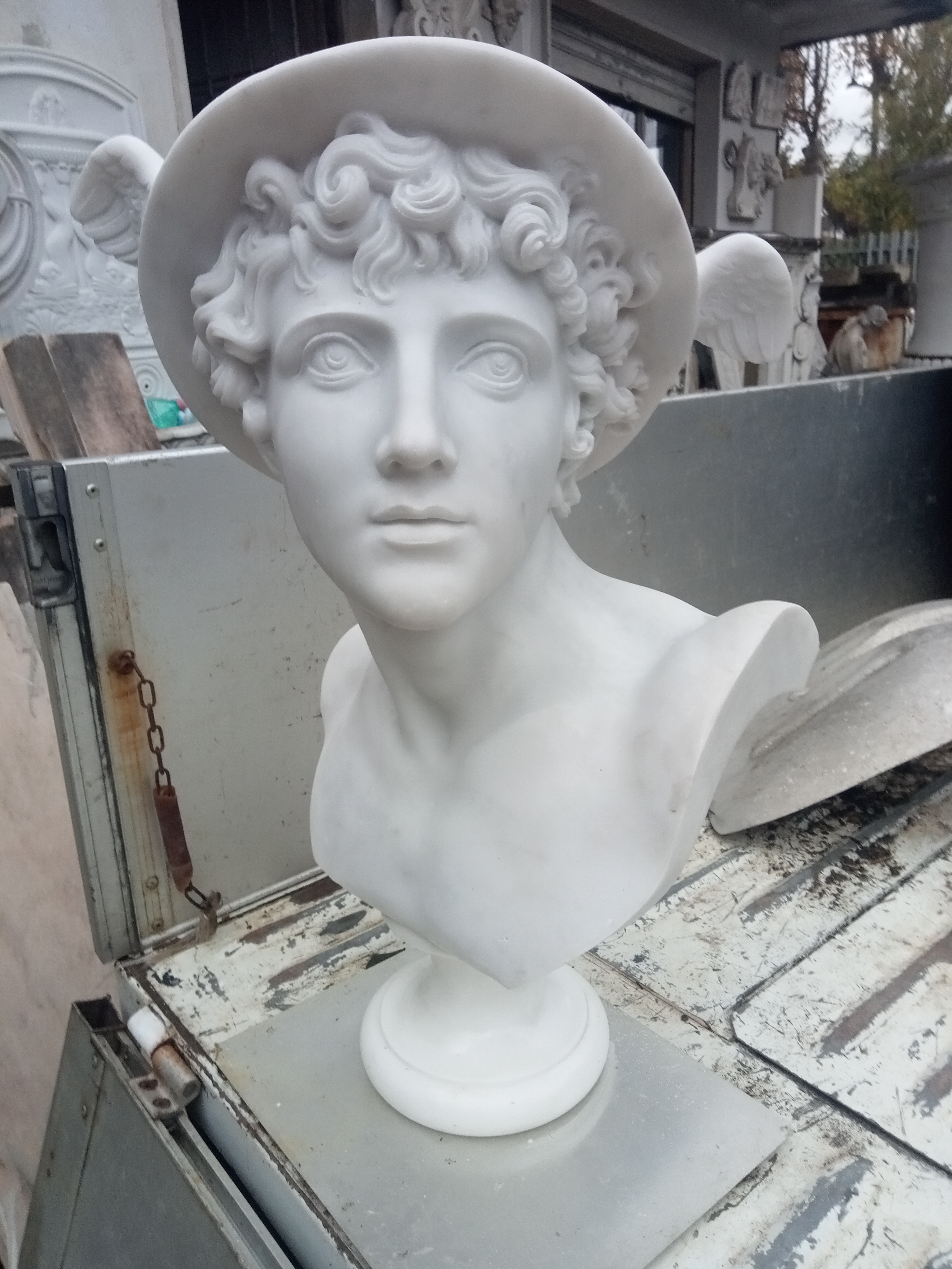 BUSTO DI MERCURIO SCOLPITO IN MARMO BIANCO CARRARA