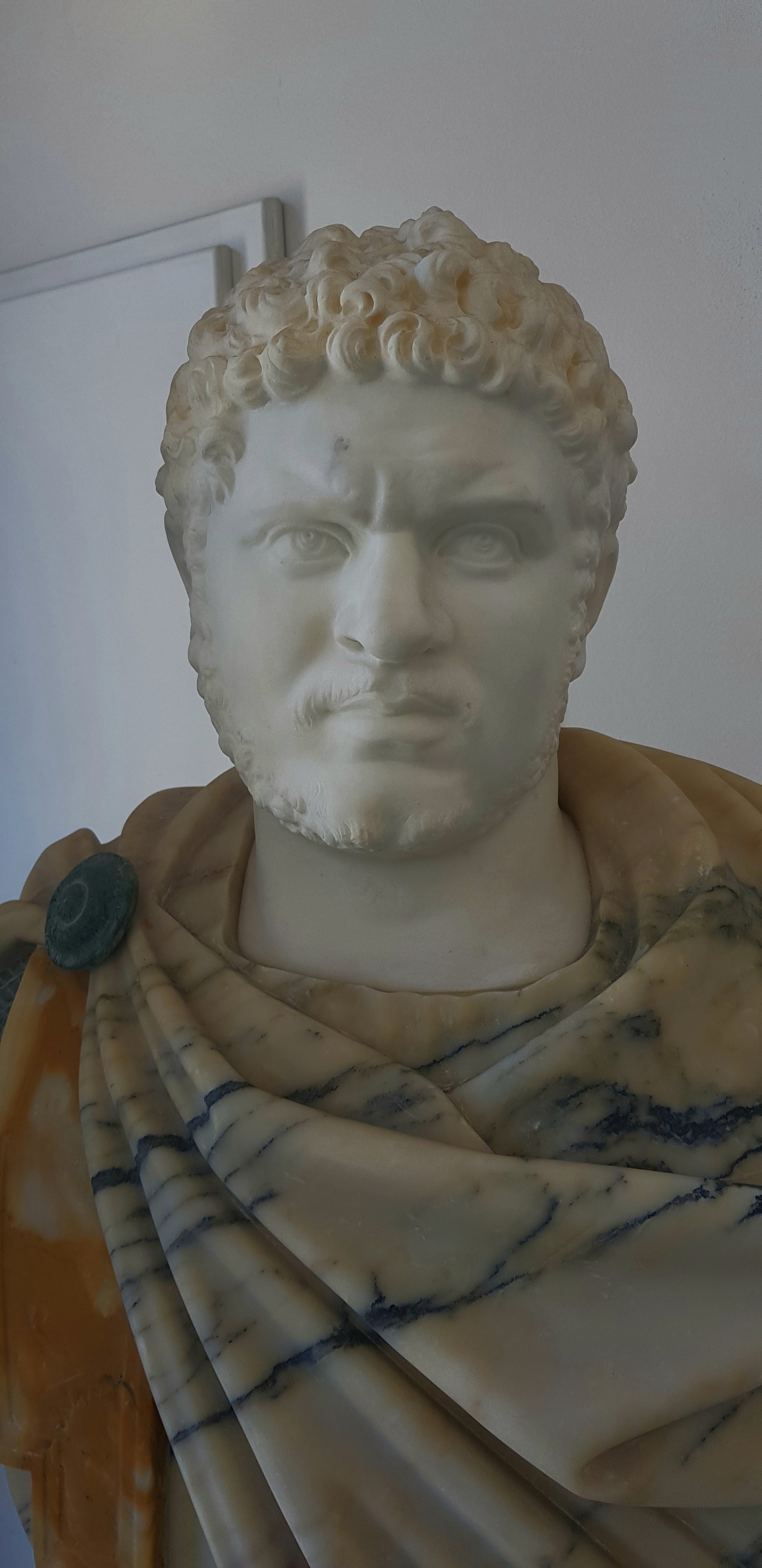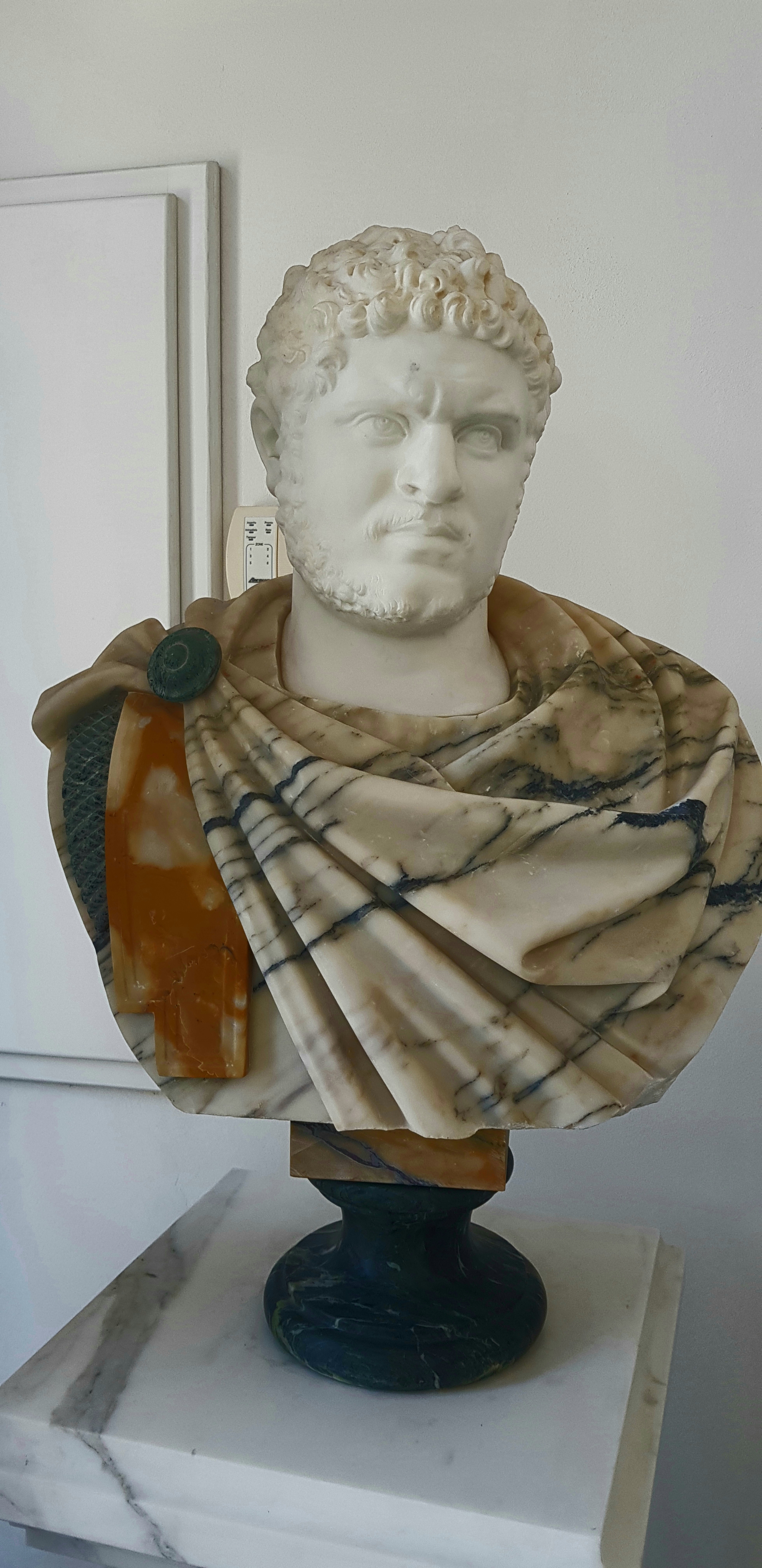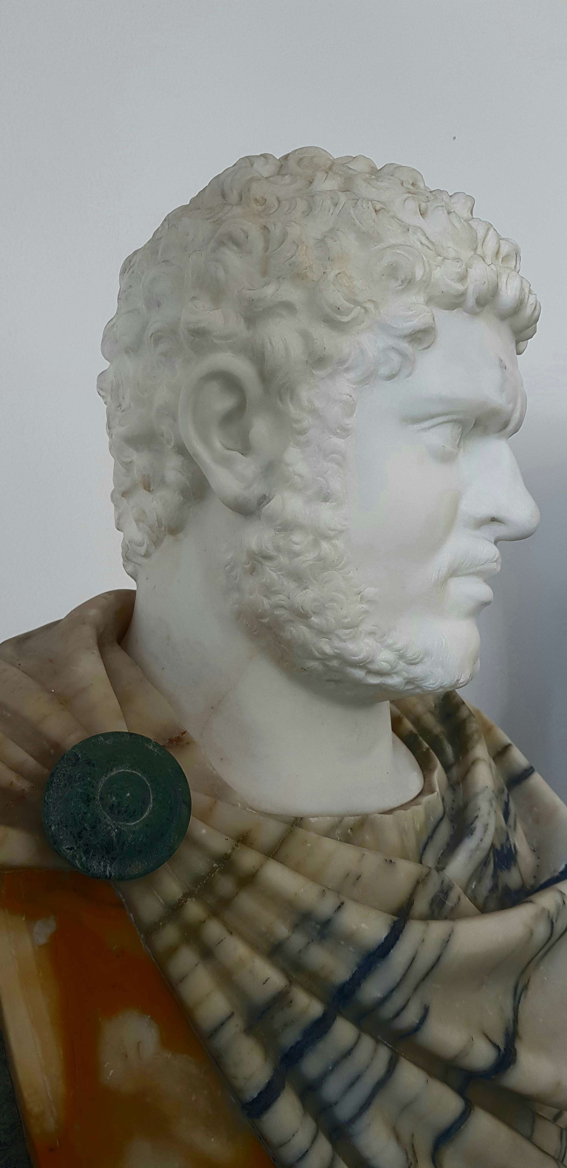 Busto di Caracalla Imperatore Romano scolpito in marmo Paonazzo antico e marmo bianco statuario