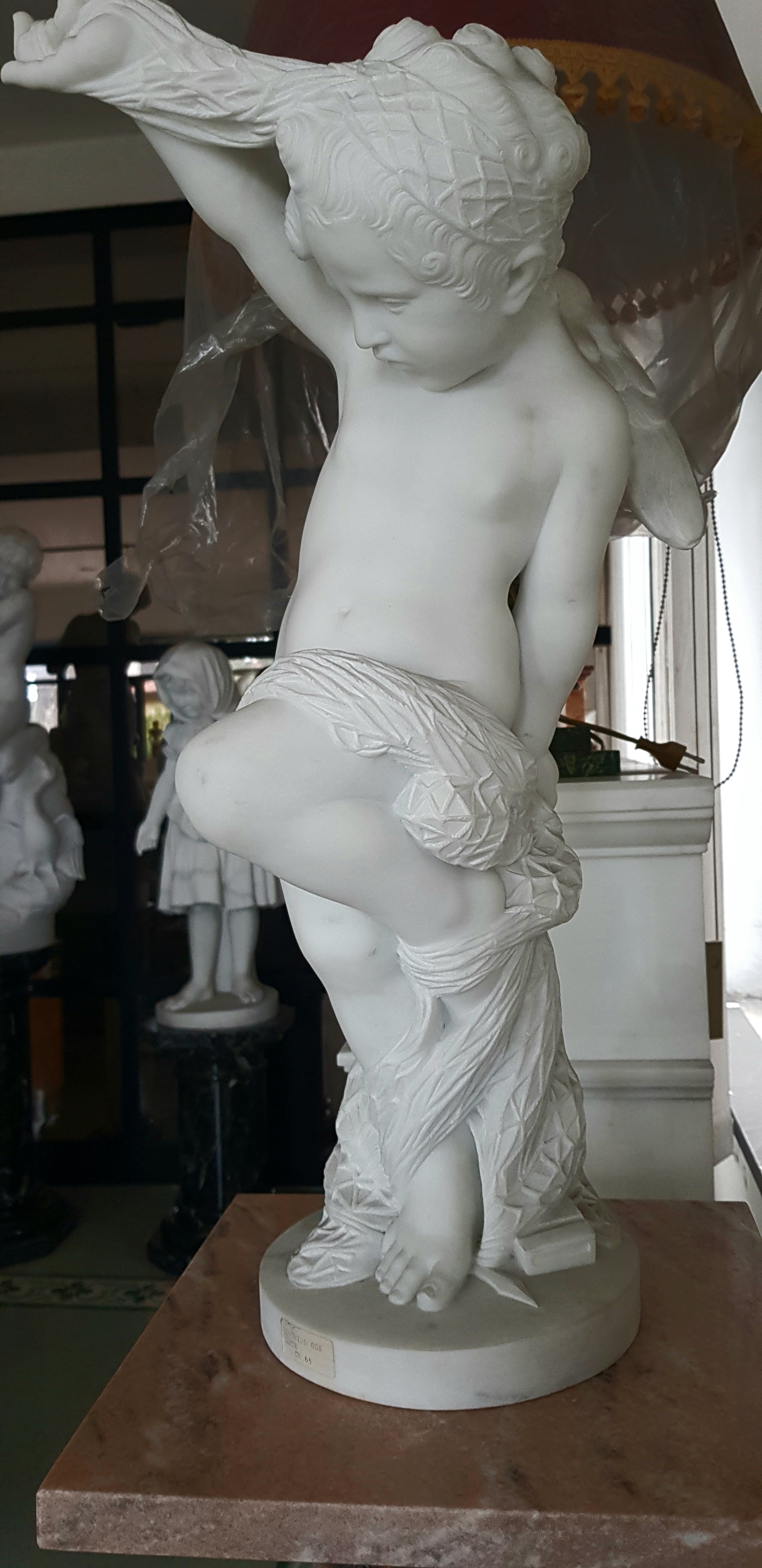 STATUA PUTTO PESCATORE IN MARMO BIANCO DI CARRARA